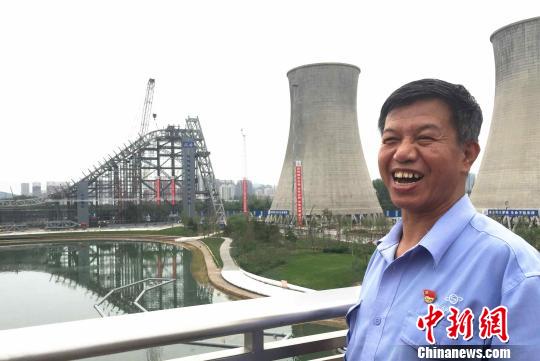 首钢党委宣传部新闻处长彭建军日前带领记者于北京市石景山区参观正在施工的首钢滑雪大跳台。 陈建 摄