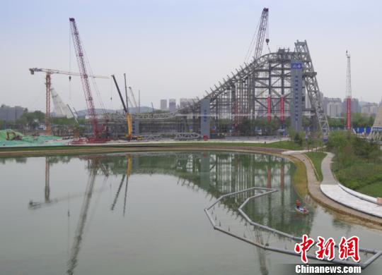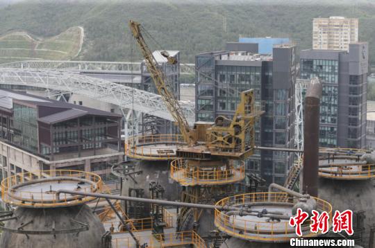 在“壮丽70年·奋斗新时代”行进式主题采访中,中新网记者走进“新首钢高端产业综合服务区”(以下简称园区),看到首钢滑雪大跳台正在紧张施工。