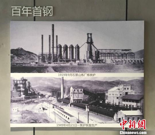 首钢创建于1919年。在位于北京市石景山区的首钢园国家冬季运动中心内,展示着百年首钢的历史资料图。 陈建 摄