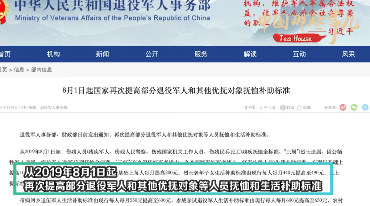 日前退役军人事务部、财政部发出通知,从2019年8月1日起,再次提高部分退役军人和其他优抚对象等人员抚恤和生活补助标准,退役军人工作的壮阔画卷正在徐徐展开。