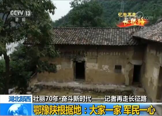 央视记者 黄峰:在郧西县的多个乡镇,至今都还可以见到像我身后这样,写在房子上的红军标语,通过团结农民、发展农民,扩大了队伍。就我目前所在的郧西县关防乡,有一个二天门村,村里的老人告诉我们,当年全村当年78户,有76人参加了红军。