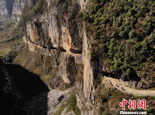 资料图:贵州赫章石板河村的挂壁公路。 韩贤普 摄