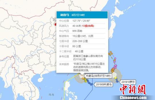 中央气象台预计,“利奇马”将以每小时10-15公里的速度向西北方向移动,强度逐渐增强,最强可达强台风级(14-15级,42-48米/秒),并逐渐向浙江沿海靠近,可能将在浙江沿海登陆(台风级或强台风级12-14级,35-42米/秒)。但目前也不完全排除在浙江近海北上的可能。