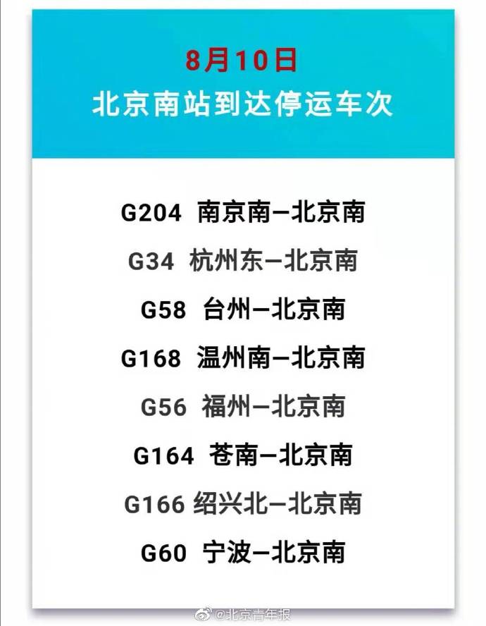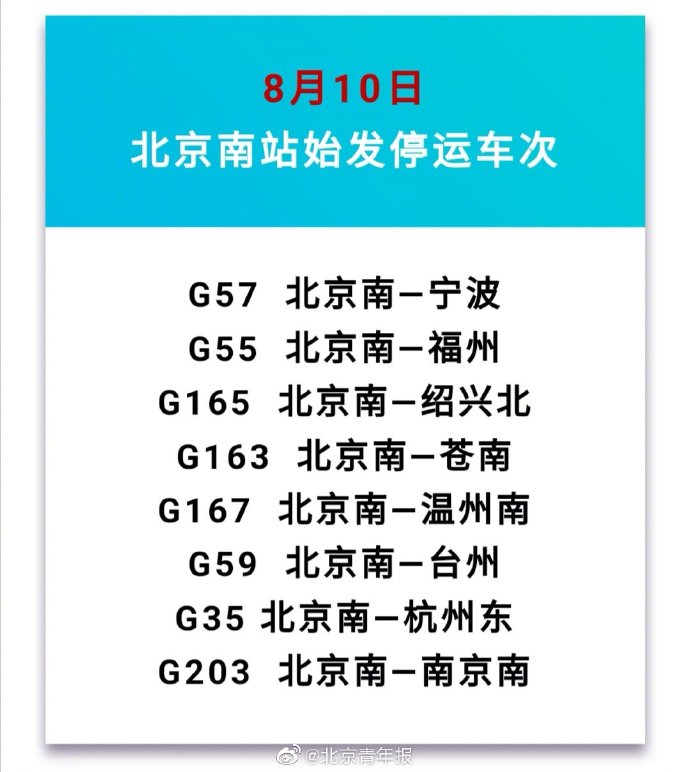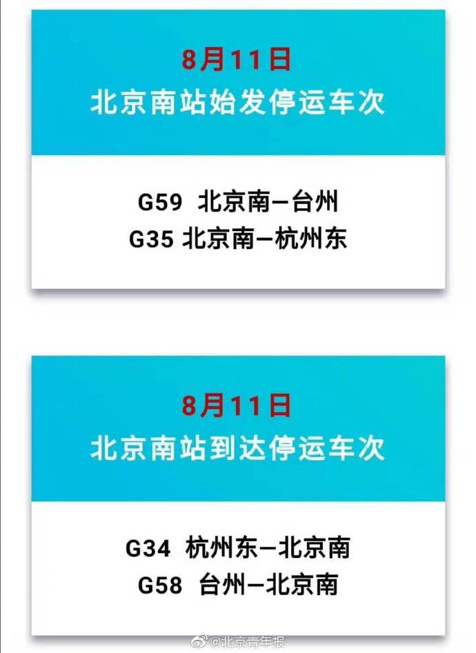 根据中央气象台消息,今年第9号台风“利奇马”预计10日在浙江象山到苍南一带沿海登陆,最大可能在浙江台州到乐清一带沿海登陆。浙江中东部、福建东北部以及台湾岛的部分地区有大暴雨,浙江东部沿海和台湾岛中部局地有特大暴雨。为确保旅客运输安全,铁路部门计划对8月10日、11日经由相关线路区段的旅客列车,采取停运措施,涉及北京南站始发终到多趟高铁列车停运。(北京青年报记者 王薇)