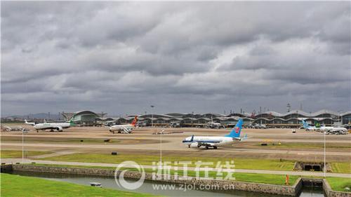 “利奇马”靠近之下的杭州萧山机场(杭州萧山国际机场供图)