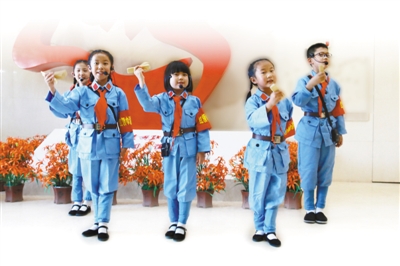 吴起红军小学的同学在节假日利用快板、说唱等形式,为游客讲解和宣传长征精神。记者 龚仕建摄