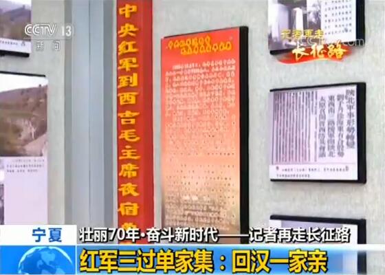 将台堡红军长征会师纪念园讲解员 唐睿楠:红25军在到达单家集这一带时,积极与回族群众搞好关系,尊重回族的宗教信仰,军长程子华为了答谢当地群众的支持,手书了“回汉兄弟亲如一家”的锦旗送到了清真寺,当时还牵着六只大肥羊,拿着六个银元宝一同送到了清真寺。