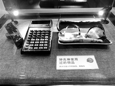 西安交通大学西迁博物馆的一个橱窗里,陈列着老式计算器、眼镜等物品,这些老物件向人们述说着中国电机之父、西安交通大学西迁教授钟兆琳先生的奋斗历程,也见证了中国西部高等教育的发展。