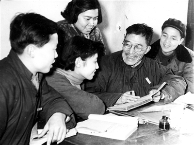 西迁初期,钟兆琳(右二)先生指导青年教师。 西安交通大学档案馆馆藏图片