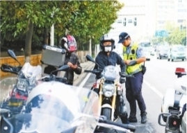 2018年9月17日,在汉口沿江大道,两名男青年骑摩托车飙车时,被江岸交通大队快骑民警查处 记者金思柳 摄