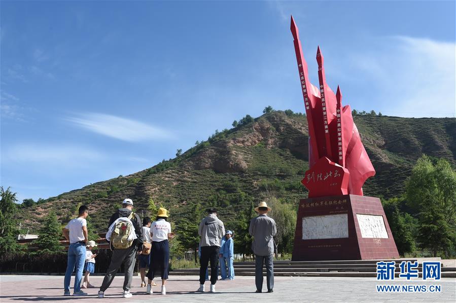 8月16日,游客在哈达铺红军长征纪念碑前参观。新华社记者 罗晓光 摄
