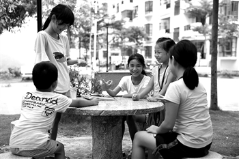 孩子们在广西上思县江平易地扶贫搬迁安置点小区玩耍(8月20日摄)。