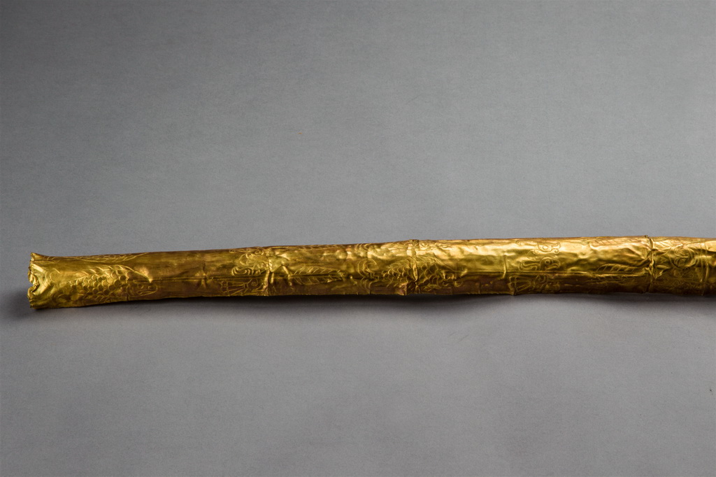 这是三星堆出土的金杖局部(资料照片)。