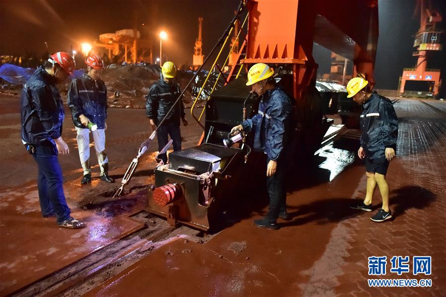 8月24日,工作人员在九龙江古雷码头进行加强抗台防汛安全巡查。新华社记者 林善传 摄