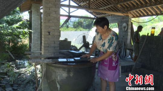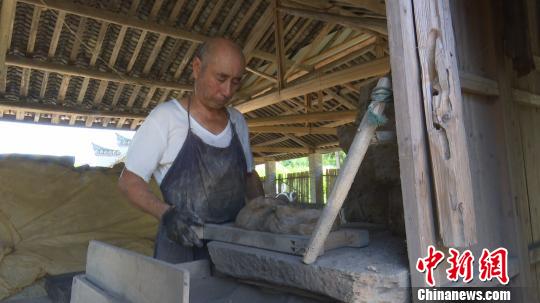 工人师傅正在为茂林花砖制坯 刘鸿鹤 摄