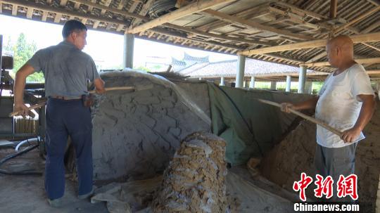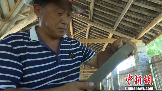 纪建新正在检查砖坯 刘鸿鹤 摄