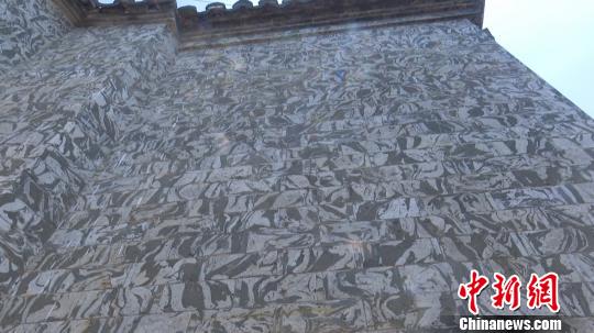 中新网宣城8月26日电 (刘鸿鹤)传统徽州建筑,大多以青砖砌墙,刷白漆,被称为“粉墙黛瓦”,而在安徽宣城泾县茂林一带的古建,却大量使用带有青白色纹路的花砖作墙体或装饰,这种砖装饰的墙面犹如一幅写意山水画,因其采用茂林当地特有的“油黄土”和“冷水土”烧制而成,故得名“茂林花砖”。