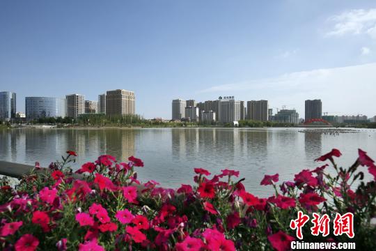 图为兰州新区栖霞湖畔一角。 丁凯 摄