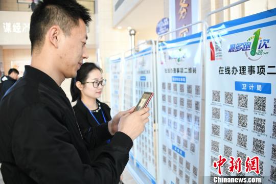 图为民众在兰州新区政府服务中心扫码办业务。 丁凯 摄