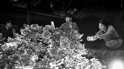 景山公园夜赏牡丹 邓伟摄