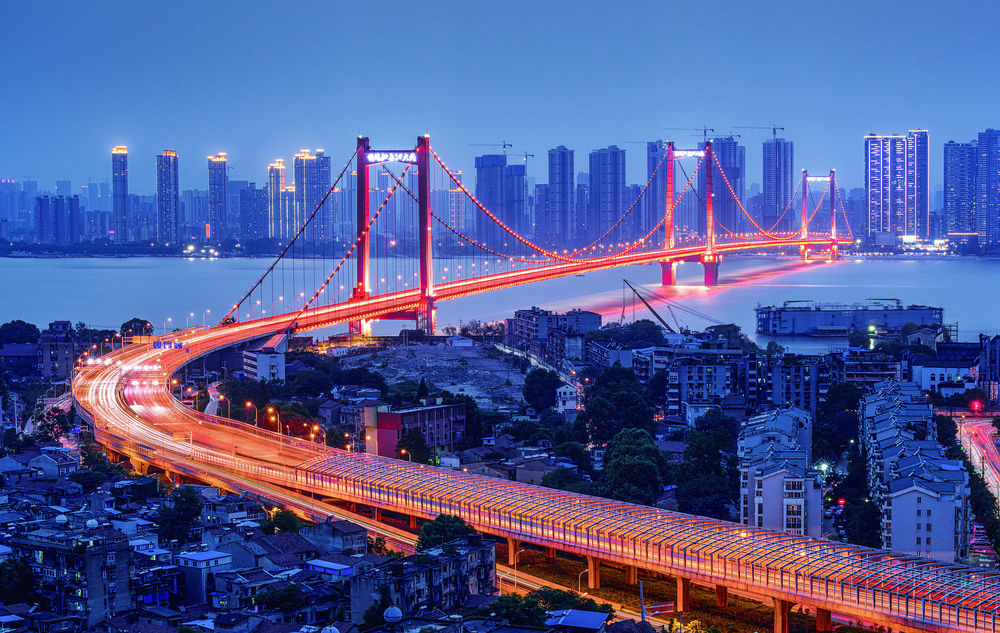 蓝色的古田桥、银色的长江二桥……飞跨长江与汉江之上的多座桥梁,虽造型各异,却在整体色彩景观上保持了协调。