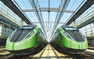 不仅快,而且更安全、更可靠。“复兴号”进行了长达16个月的综合试验,在中国标准动车组上布置测点近3000个,在地面60个工点布置测点上千个,运用考核试验考核里程超60万公里,是迄今为止试验周期最长、试验项目最多的高速动车组综合试验。如今,亚洲、欧洲、美洲、非洲大陆上都可以看到中国列车的身影,雅万高铁、中老铁路、中泰铁路、匈塞铁路等一批重点项目顺利推进。