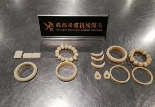 四川新闻网成都9月4日讯(记者 李丹)4日,四川新闻网记者从成都海关获悉,日前,成都海关所属成都双流机场海关旅检现场在对从埃塞俄比亚首都亚的斯亚贝巴抵达成都的航班监管过程中,从3名中国籍旅客行李中查获疑似象牙手镯、吊坠等15件,毛重339克。