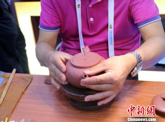 手工艺人展示全手工紫砂壶。 石羽佳 摄