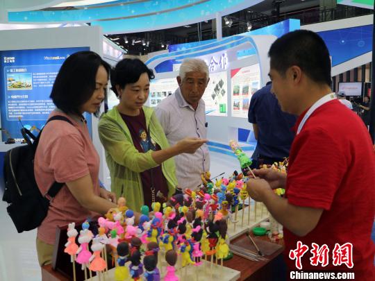 面塑匠人介绍面塑产品。 石羽佳 摄
