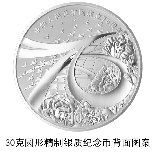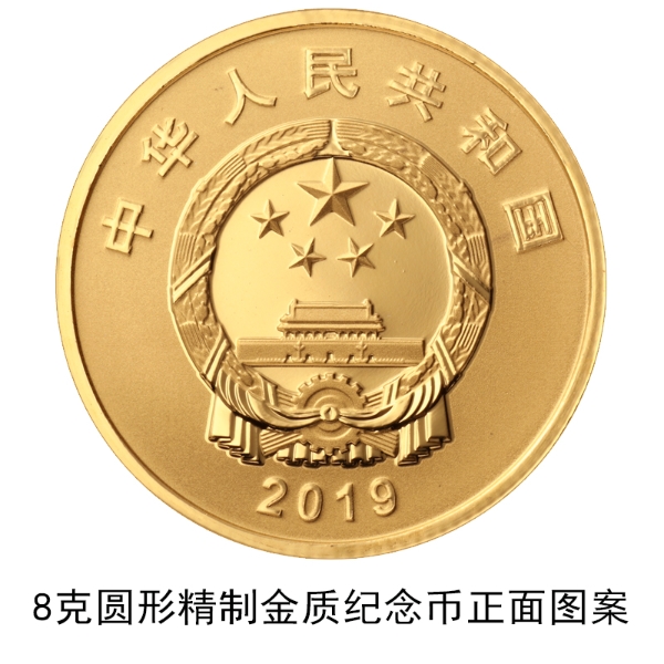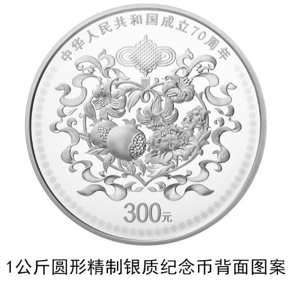 央行介绍,金质纪念币和银质纪念币正面图案均为中华人民共和国国徽,并刊国名、年号。金质纪念币有150克圆形和8克圆形两种,其中150克圆形金质纪念币背面图案为寓意民族团结同心,普天欢颂国庆的组合图案,最大发行量2000枚。银质纪念币有300元、50元、10元三种面额。该套金银纪念币由中国金币总公司总经销。