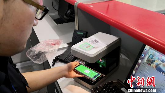 机场安检通过设备扫描旅客手机二维码完成验证流程。合肥机场供图