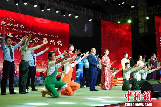 中新网西宁9月11日电 (记者 张添福 胡贵龙)9月10日晚,中共青海省黄南州委“不忘初心跟党走·牢记使命再出发”主题党日活动在该州民族高级中学举办。期间,演绎了以92岁老党员叶志保为原型的舞台剧,88岁老党员张宝义带领参会者重温入党誓词,场面感人温馨,催人奋进。