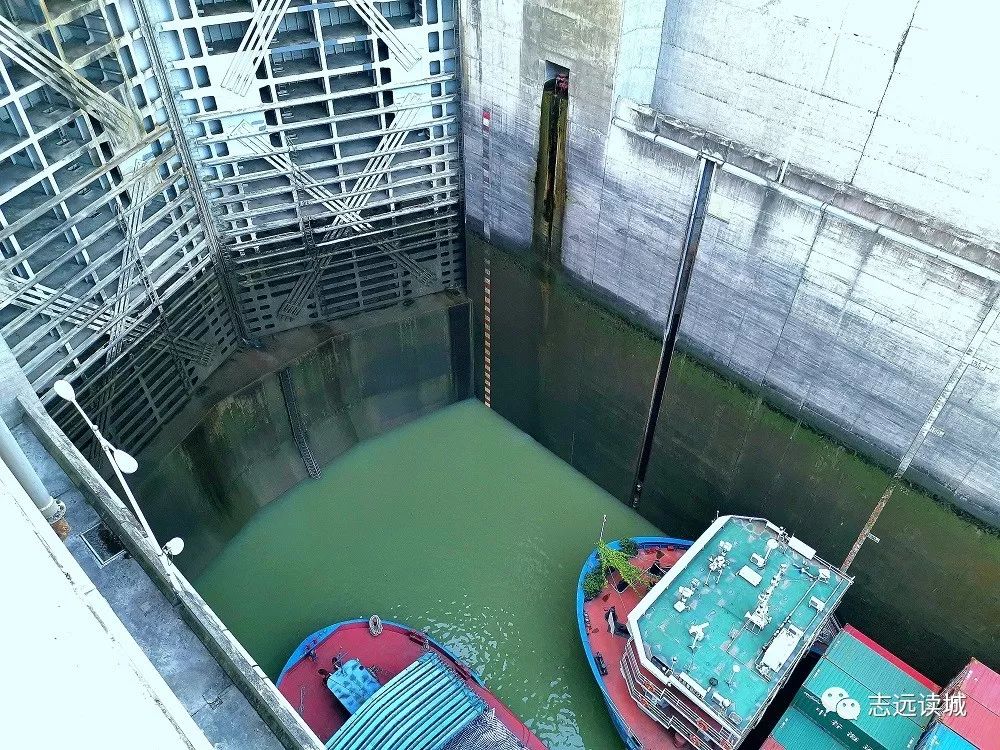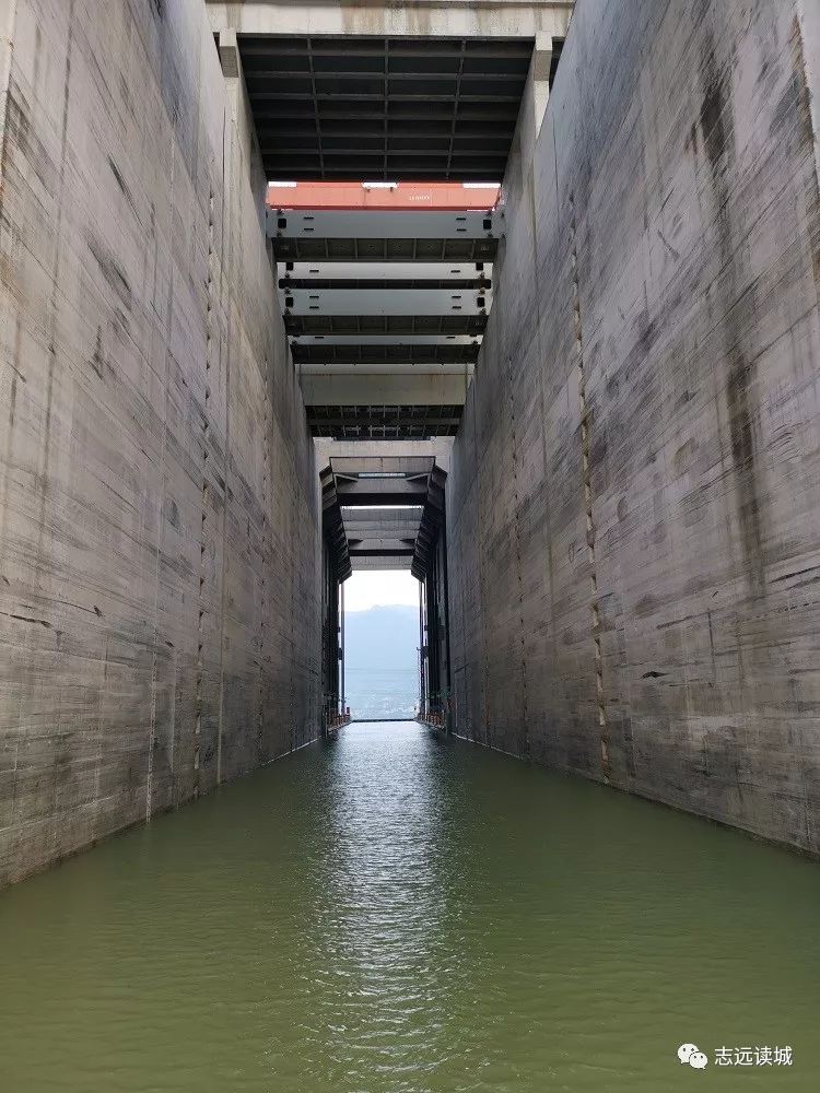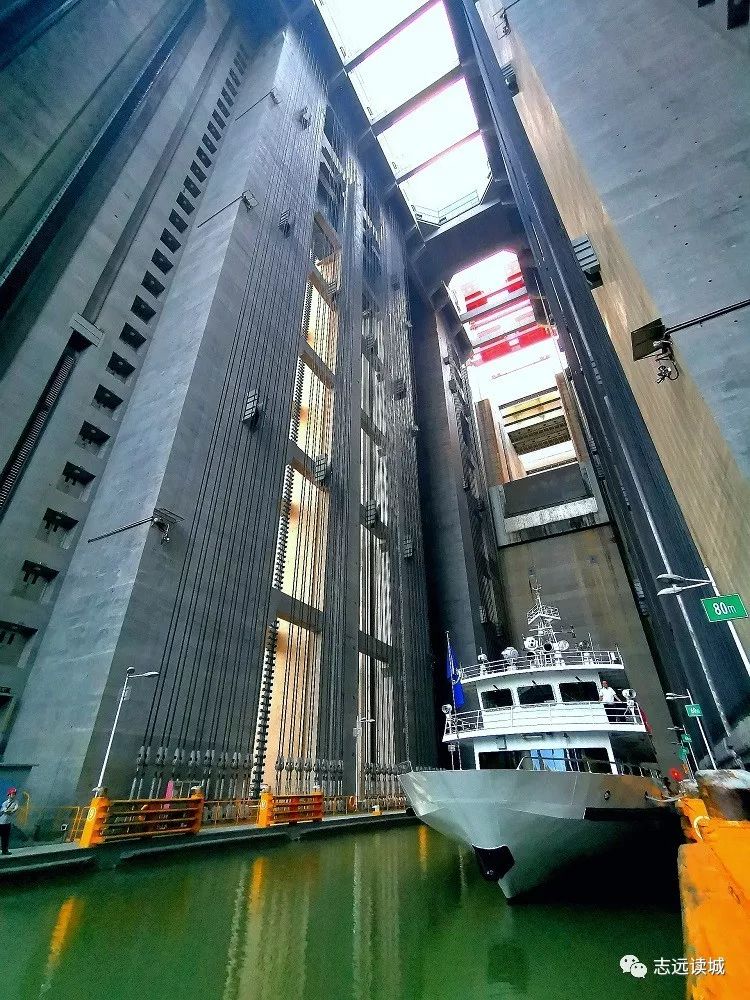9月11日黄昏,《志远读城》乘坐海巡艇1291号驶入升船机内,想到数米之遥外,就是落差百米的“悬崖”时,不禁替船长捏了一把汗。