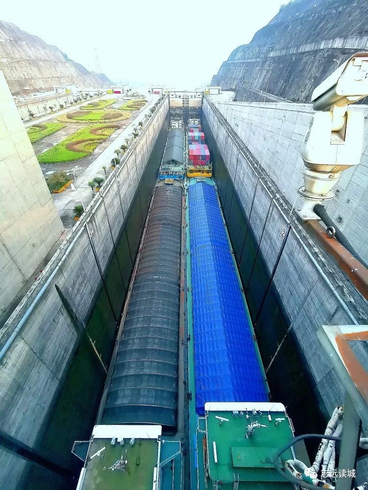 同时,为了突破三峡船闸设计负荷能力的限制,解决过闸较慢的问题,在三峡大坝建设了双线五级船闸,与此同时,世界上规模最大、技术难度最高的升船机建成并投入运行。从此,轮船穿过三峡大坝的方式,被形象地比喻成“大船爬楼梯、小船乘电梯”。这一改造,使得三峡船闸的通航能力,大大提升。