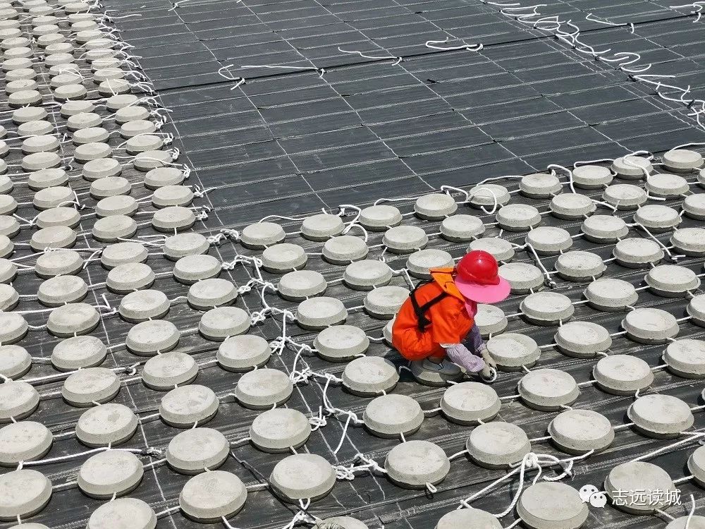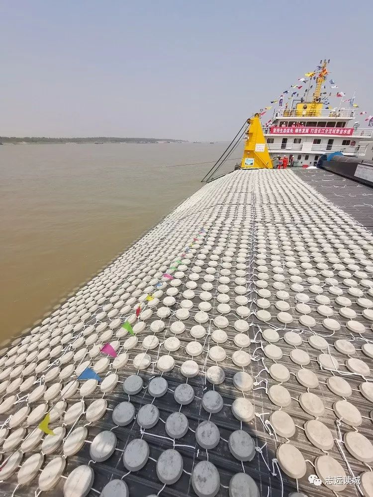 《志远读城》乘海巡艇,来到鄂州江段的戴家洲水道整治现场,看到了热火朝天的立体施工图景:岸上工程,采取生态化钢丝网格、生态护坡砖等生态护岸结构,实现陆上植被和河岸景观的较快恢复;滩上工程,则用生态固滩技术,重建了滩上植被,整个工程用的草籽就有十多种;水下工程,为了控制住水中“流动的沙丘”,采用50年不腐烂的无纺布,并在上面拴满30公斤重的水泥预制块,用专用铺排施工船沉放到江底,稳固河床。人们形象地称之为在江底“铺地砖”。