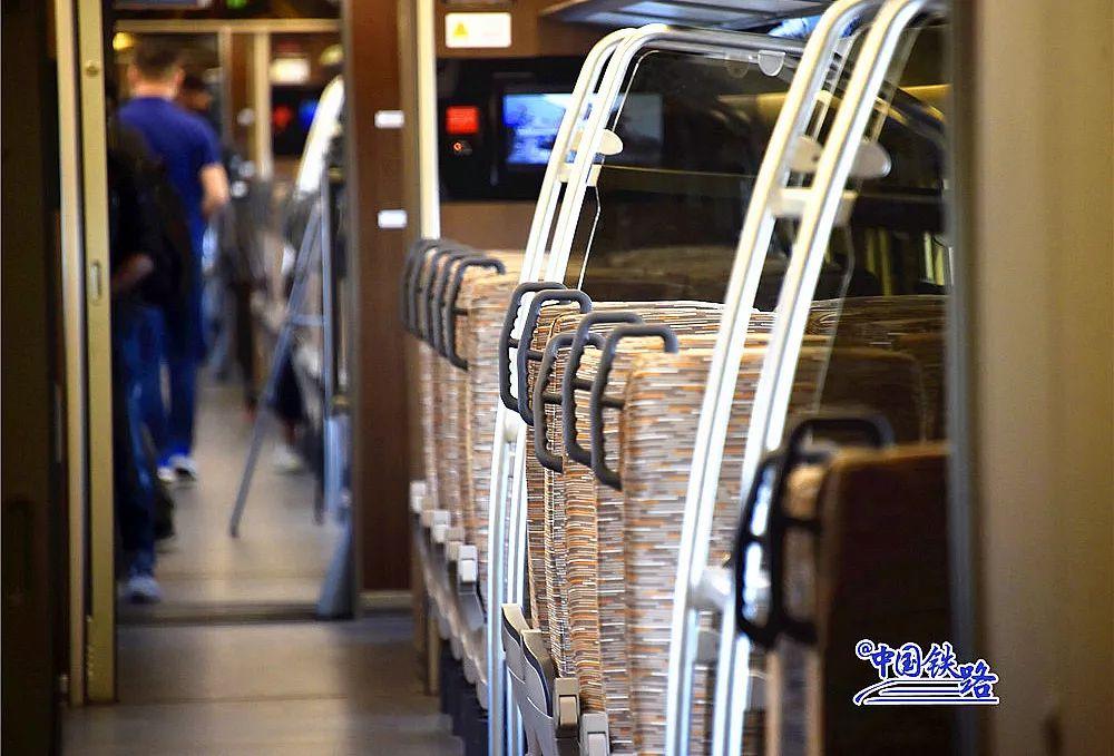 考虑到去机场的旅客携带大件行李多,中国铁路北京局集团有限公司对复兴号动车组列车的服务设施进行了升级改造,将二等车厢座椅“3+2”座位布局改为了“2+2”,通道宽度从530毫米增加到了1010毫米。