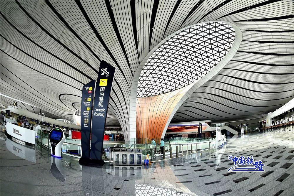 列车抵达大兴机场站后,让人有种走进地铁站的穿越之感。搭乘飞机的旅客,可从南北两个出站厅分流出站,通过换乘大厅向上进入航站楼值机,最多需要10分钟。旅客还可通过换乘大厅进入城铁站厅层,换乘城铁及公共交通