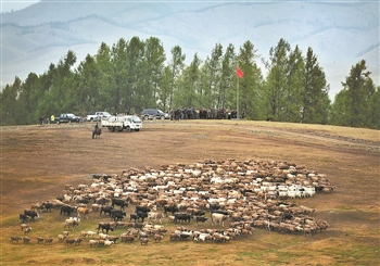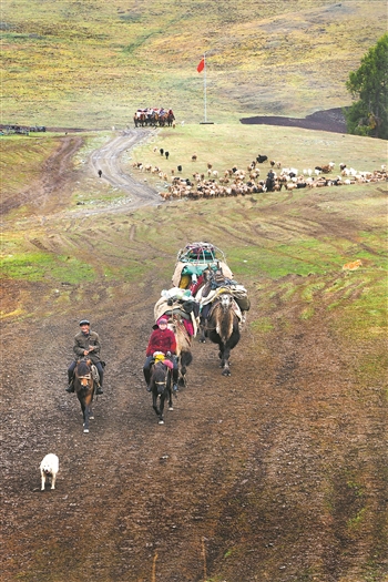 每年9月到10月上旬,为了躲避严寒,确保牲畜有足够的食物和水源,居住在新疆阿勒泰地区的哈萨克族牧民要赶在降雪之前将牲畜赶往平原地带,这是他们每年必须进行的秋季“生命大迁徙”,也被称为“转场”。转场是一种随着季节变化,不断将牲畜赶往草料丰富地区的循环轮牧方式,转场通常在每年的夏季和秋季进行,但在某些气候和植被条件差异较大的地方,也有每年进行4次转场的情况。