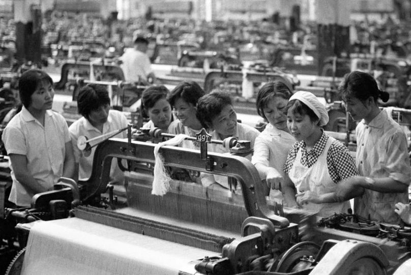 1979年夏,上海国棉十二厂派出织布能手到武汉第六棉纺织厂进行传帮带。(新华社记者于澄建 摄)