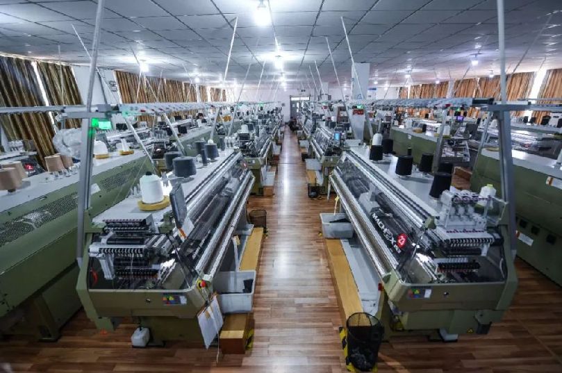 2018年5月23日,桐乡蒂维时装有限公司的全成型电脑横机车间,全自动机器根据后台输入的程序数据直接生产成衣,每台全成型电脑横机的价格超过100万元。(新华社记者徐昱 摄)