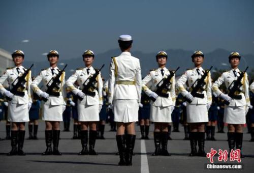 资料图:9月25日上午,庆祝新中国成立70周年活动新闻中心与中央军委政治工作部宣传局、国防部新闻局,共同组织阅兵训练采访活动。来自38家境内外媒体的47名记者走进阅兵训练场,了解相关训练准备情况。图为仪仗方队女兵在训练中。 中新社记者 侯宇 摄