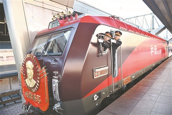 这就是“毛泽东号”机车,一列诞生于战火纷飞年代、承载着红色基因的火车,一路驶来,创造出一个又一个奇迹,更体现着工人阶级跟党走的意志。