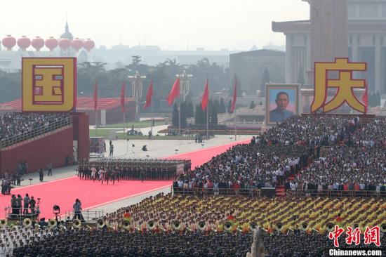 10月1日上午,庆祝中华人民共和国成立70周年大会在北京天安门广场隆重举行。中新社记者 盛佳鹏 摄
