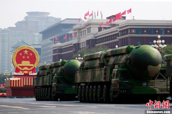 图为东风-41导弹方队接受检阅。中新社记者 汤彦俊 摄