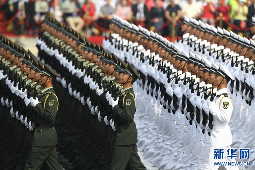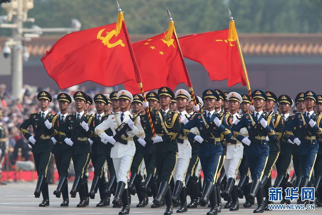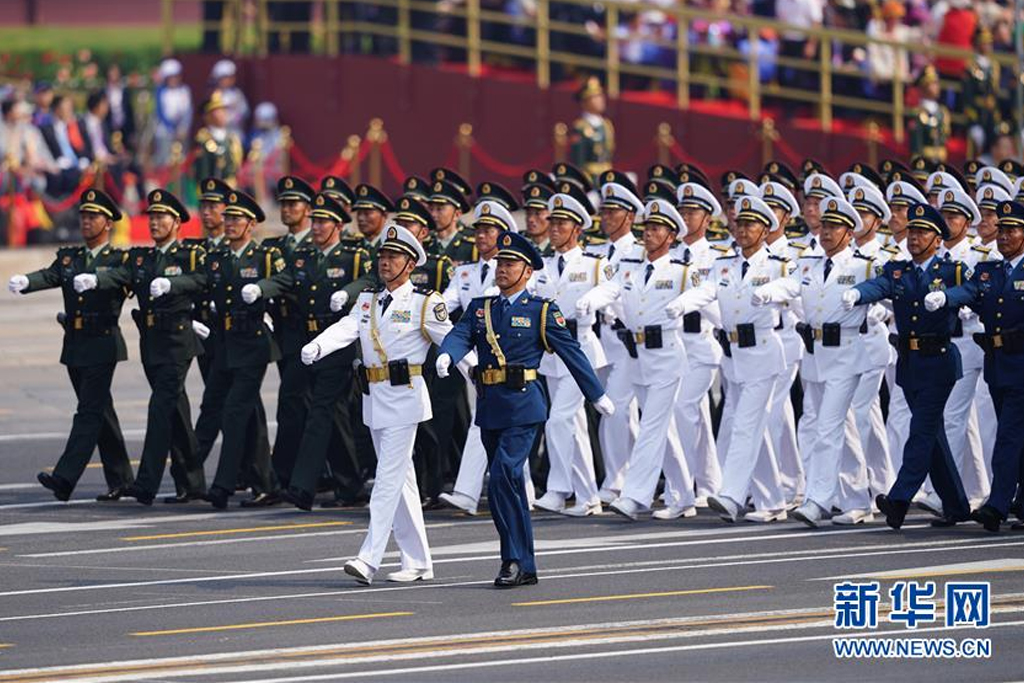 2.仪仗方队首次同时高擎党旗国旗军旗经过天安门接受检阅,也是仪仗方队历次参阅规模最大的一次。