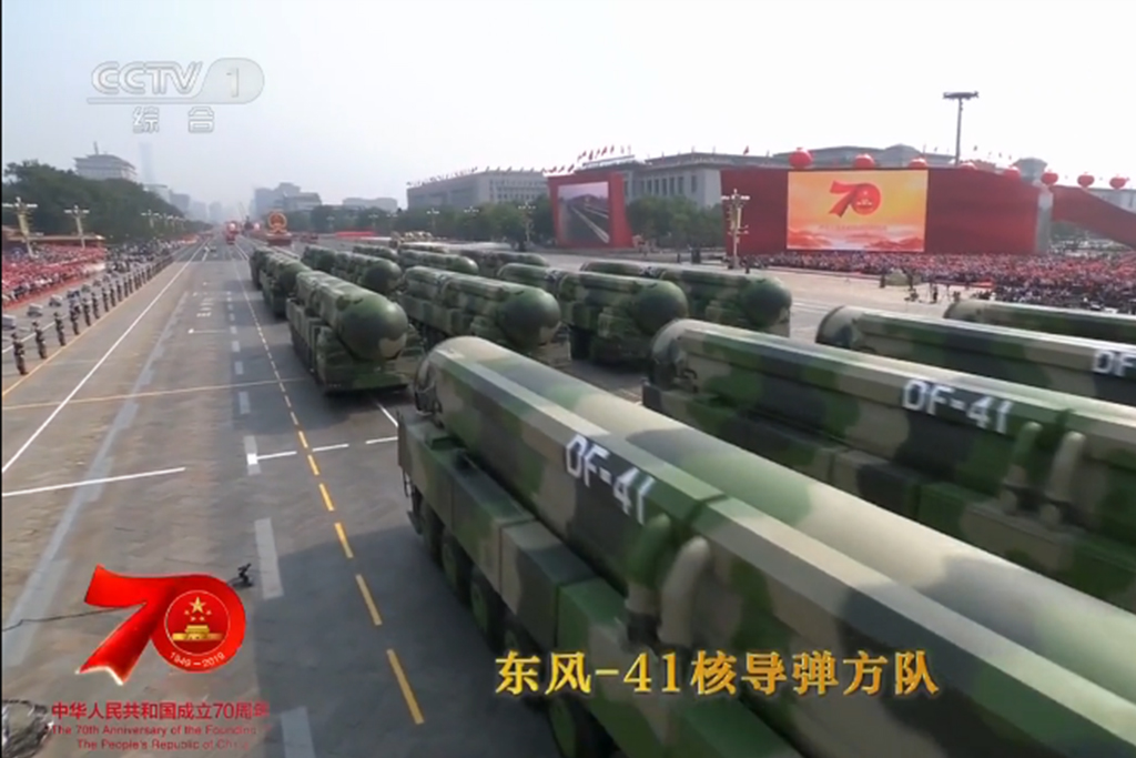 19.首次亮相的东风-41核导弹方队彰显了我国最先进最具有威慑力大国长剑的重要地位。