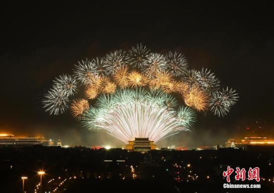 10月1日晚,庆祝中华人民共和国成立70周年联欢活动在北京天安门广场举行。中新社记者 赵隽 摄