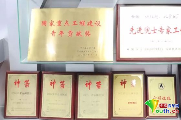 航天科技集团一院长征二号F火箭及其设计团队所获部分荣誉。中国青年网记者 张瑞玲摄