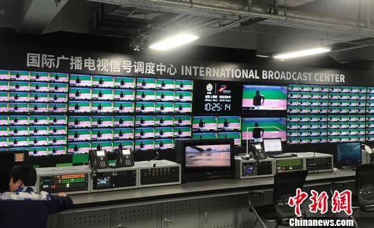 记者在位于IBC三楼的军运会场馆信号调度中心(CDT)看到,弧形电视屏上,密密麻麻布满了来自30多个场馆的直播信号,以及主播机构选取的展现主办城市武汉最具代表性的五个风景摄像机画面。赛时,这里赛事转播总传送信号的路数超过200路,然后通过卫星、光缆、网络新媒体等传输途径,以全媒体的传播方式分发到全世界。