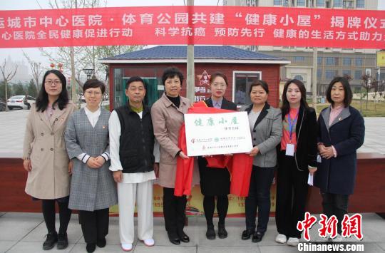 2018年4月,运城市中心医院推动医疗资源下沉,与体育公园试点建设“健康小屋”,配备身高体重仪、血压仪、视力表、健康教育宣传资料等健康自测仪器。